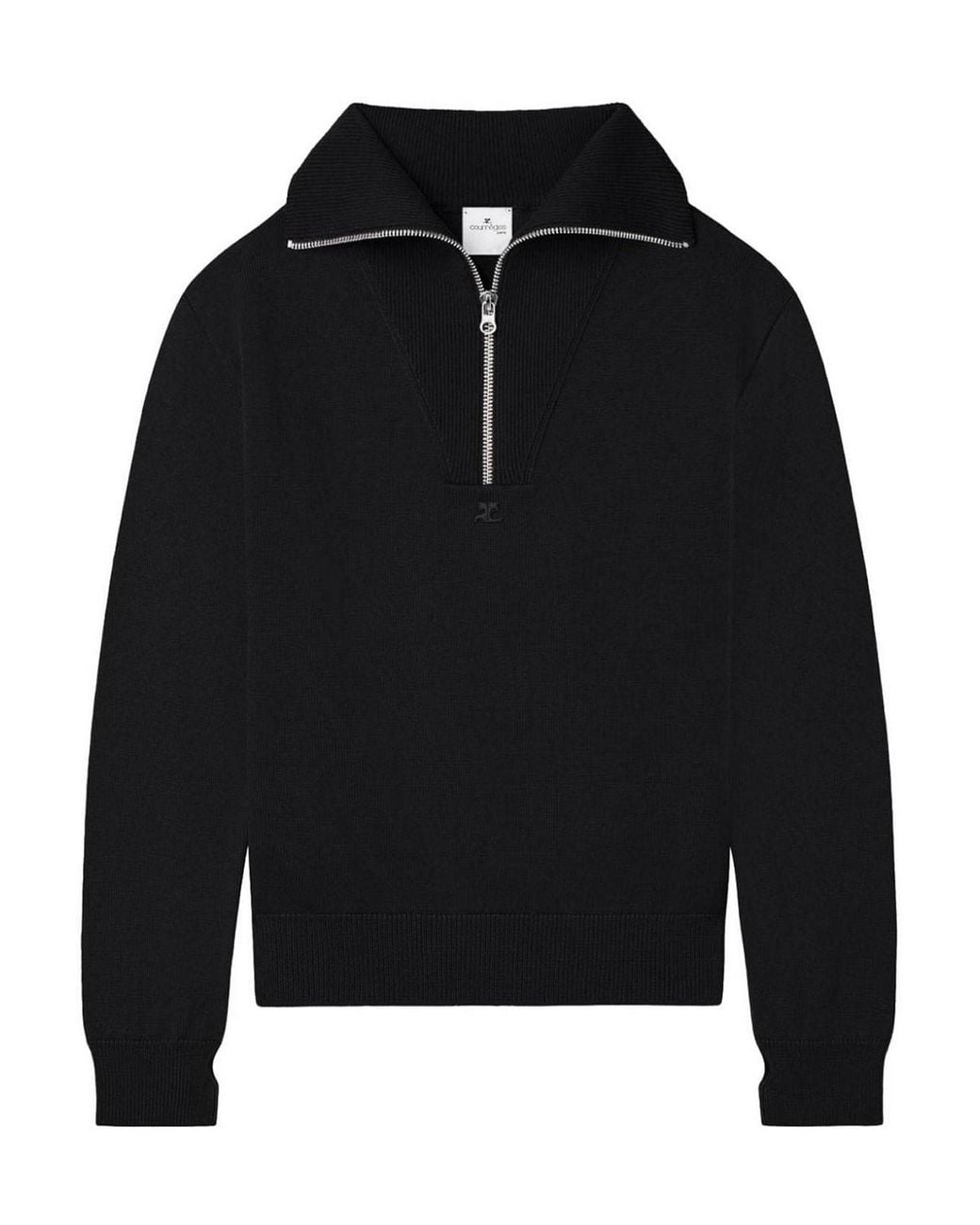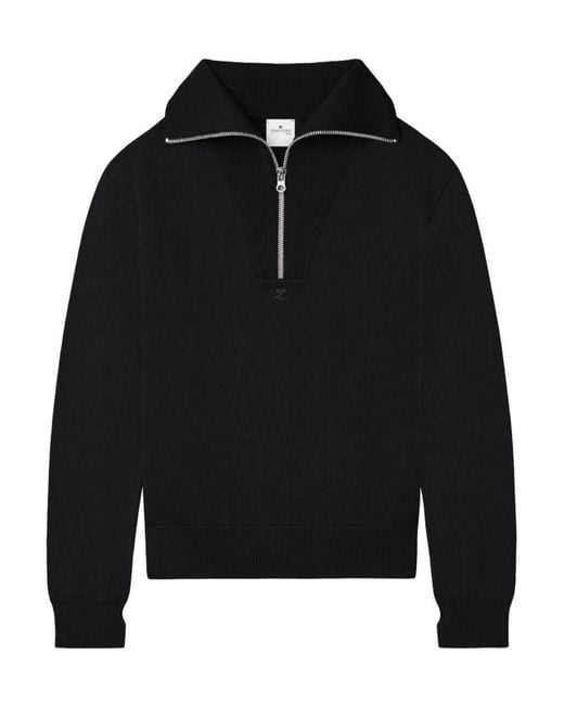 Black jumper from courrges logo knitted design ribbed collar short zip long sleeves ribbed hem and cuffs let yourself be enveloped by the softness of the in this casual jumper without sacrificing the authentic luxury that courrges brings courrges black zip unisex Colour: black