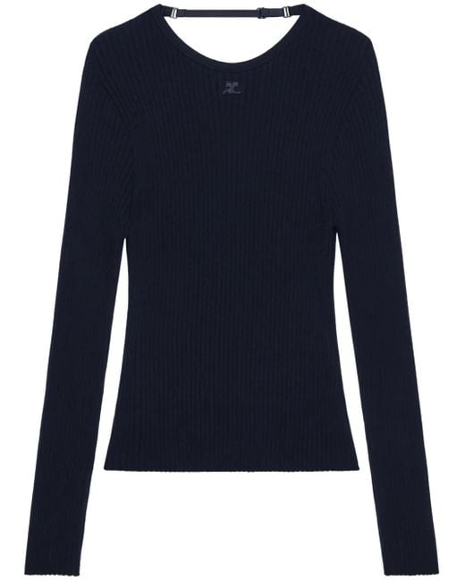 Navy blue adjustable strap to the rear appliqué logo fine ribbed long sleeves Size: S. Gender: Female. Material:Polyester/Viscose. Colour: blue
