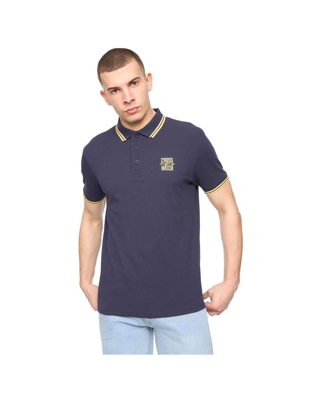 The Crosshatch Changra Polo blends classic style with everyday ease, crafted from 100% cotton pique for breathable comfort and a premium feel. Designed with a ribbed collar and cuffs, it offers a refined silhouette, while the three-button placket adds a timeless touch. Finished with a raised ink print on the chest, this polo delivers understated style in every detail. -100% Cotton Pique - Three-button placket - Ribbed collar & cuffs - Crosshatch branding Colour: blue