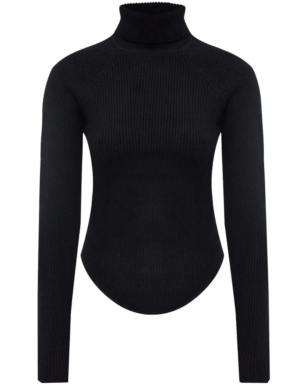 Black mercerized wool-cashmere blend chunky ribbed knit roll neck long raglan sleeves curved hem Size: S. Gender: Female. Material:Mercerized Wool/Cashmere. Colour: blue
