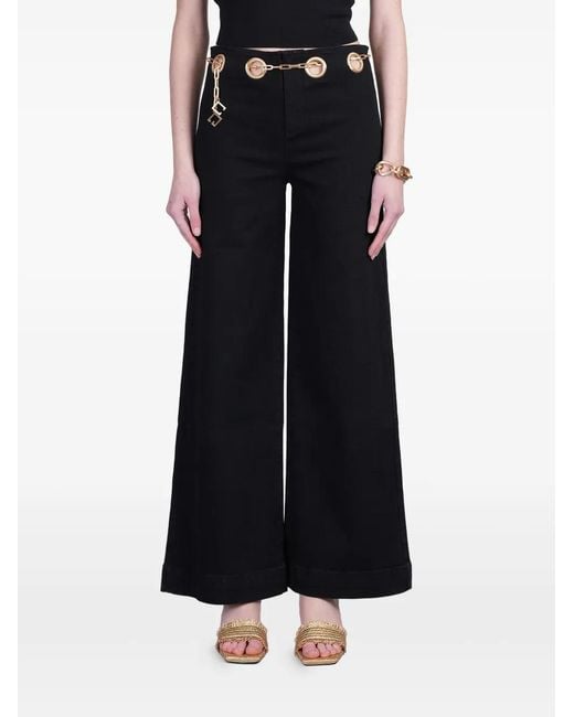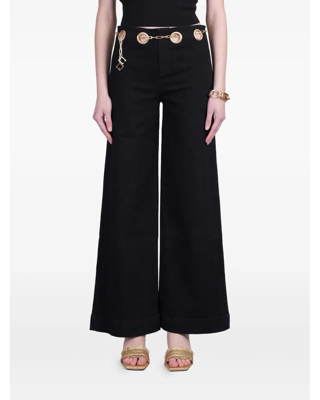 Black concealed front fastening detachable and adjustable waist belt metal eyelet detailing straight hem Size: 24. Gender: Female. Material:Cotton/Elastane. Colour: black