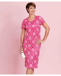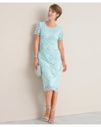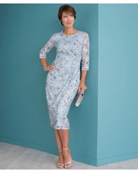 On-trend stretch lace dress for evenings and special occasions throughout the year. Designed for flattering style with a contouring shape in our stretch fabric in a stylish floral print design. Great for weddings, evening events and smart days out. Fully lined for cling free comfort. Side ruching makes it very flattering. Pull on for ease. Super flattering shape and contouring fit with stretch for ease and fully lined for cling-free comfort. In stylish printed lace for on-trend style. Regular fit. Machine washable. 95% polyester, 5% elastane. Lining: 100% polyester. Lengths: 112cm (44inch), 122cm (48inch). Colour: blue