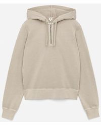 Go to END.The Briar by Damson Madder fuses two wardrobe icons — the denim jacket and the hoodie. Cut in an oversized smock silhouette, it’s crafted from soft, fluid denim with a drawstring hem and