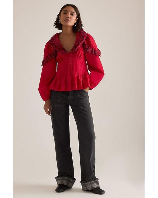These are jean ius, featuring two designs to suit your mood. Saving wardrobe space and what-to-wear dilemmas, opt for the grey check side to bring a pop of pattern to your 'fits, or the goes-with-anything black wash side, both elevated with contrast turn-up hems. Sylvie Reversible Jeans by Damson Madder, Women's Size: Uk 6, Cotton at Anthropologie Colour: red