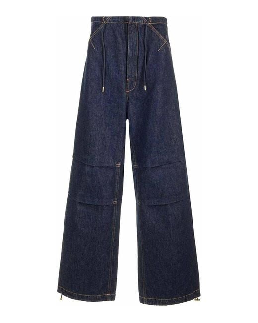 Daisy military trousers in raw blue denim with a loose fit. high waist, wide legs and adjustable bottom with drawstring. side slash pockets, stitched darts. Colour: blue