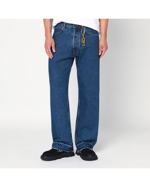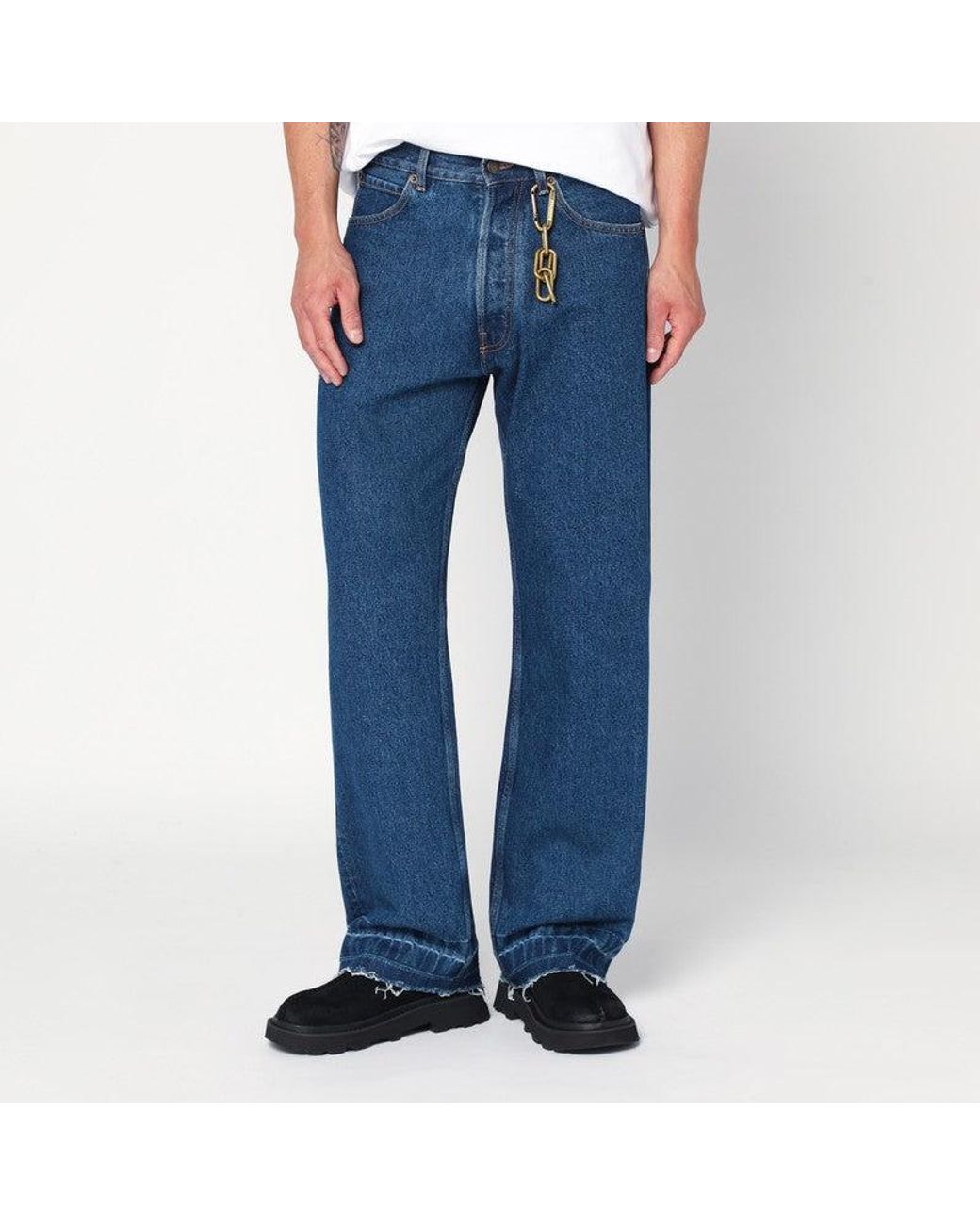 Regular jeans by Darkpark in blue cotton denim, featuring a straight leg design, five pockets, belt loops, detachable metal keychain with gold finish, and raw hem.SpecificationValueBrandDARKPARKAge GroupadultColorBlueMaterialCottonMade InItalyGenderMenSize30SeasonFW25/26