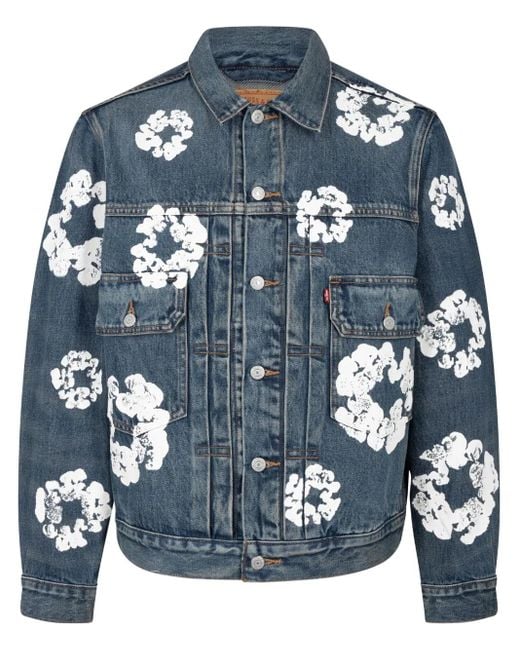 Men's Blue X Levi's Wreath-Print Denim Jacket