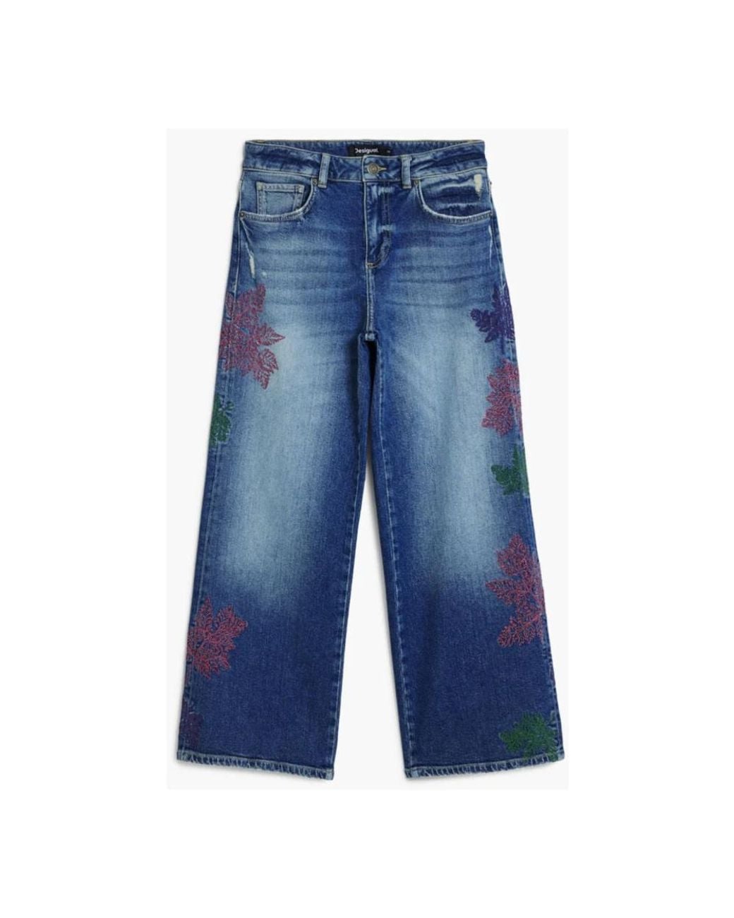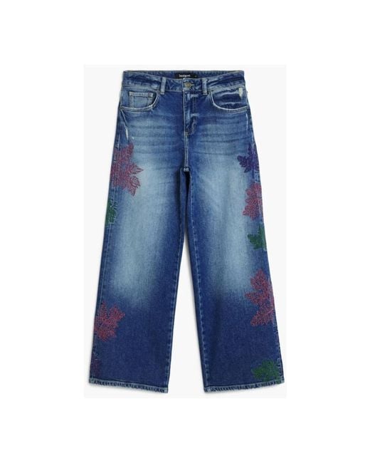 Desigual Botani Jeans are cropped, high-waist denim featuring botanical embroidery and five-pocket styling. They combine decorative detailing with everyday wearability for casual outfits. Key attributes: Blue | Azzurro | Cotton | Stretch fabric | Button and zip closure | Five-pocket styling | Botanical embroidery | Logo detail | Dimensions & fit: Waist: 34 cm (size 36) | Hips: 49 cm (size 36) | Front rise: 27 cm (size 36) | Leg opening: 26 cm (size 36) | Thigh width: 29 cm (size 36) | Outseam: 90 cm (size 36) | High waist | Loose through hips and thighs | Cropped straight leg | Composition & care: 71% Cotton | 27% Polyester | 2% Elastane | Machine wash 30°C; do not tumble dry; do not bleach; iron at medium temperature; do not dry clean.