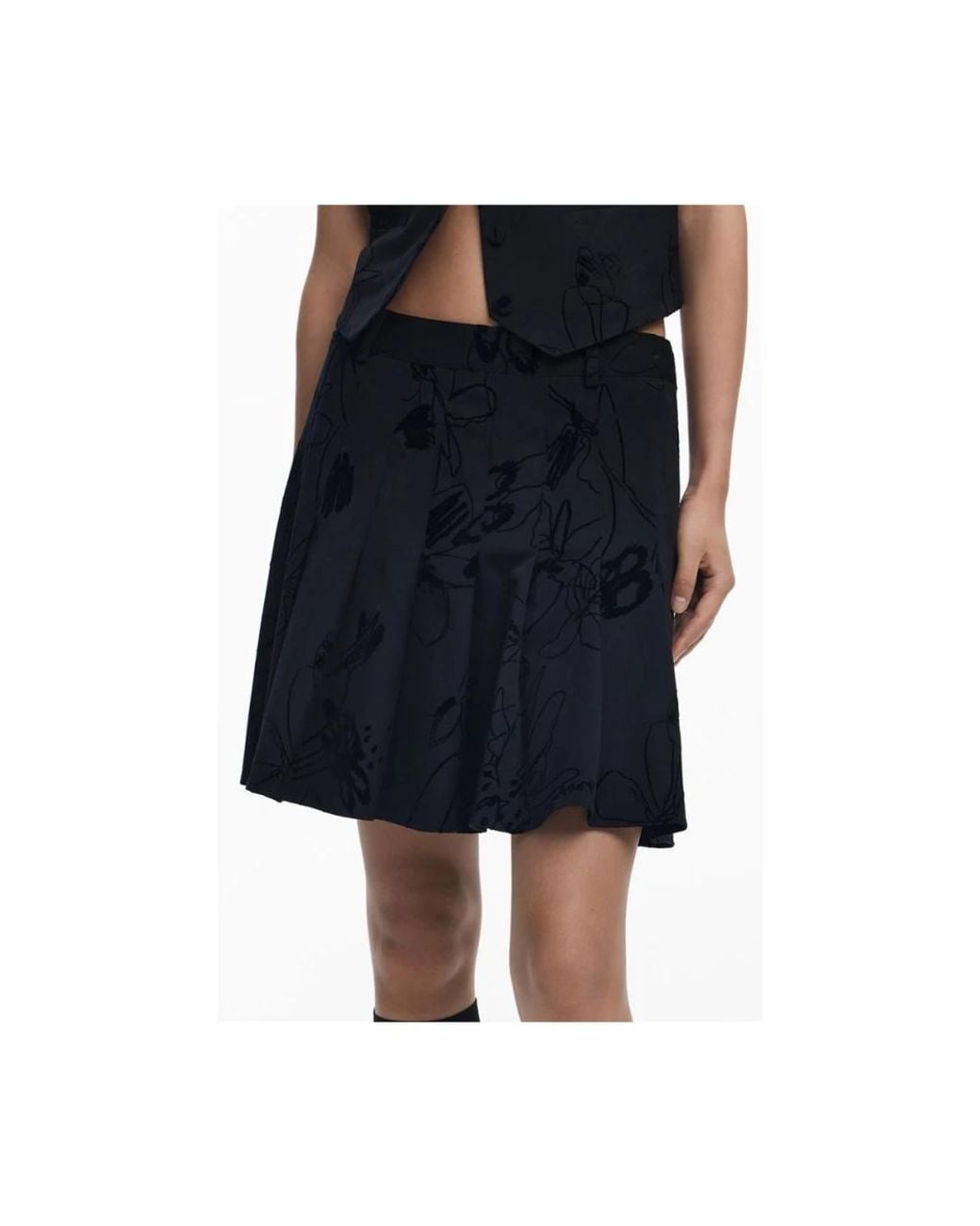 Desigual Flocked Short Skirt pairs a bold flocked motif with contrasting trim for an eye-catching mini silhouette. The piece is finished with a side zipper and the signature Desigual logo for standout styling. Key attributes: Black | Polyester | Side zipper closure | Flocked design | Contrasting details | Signature Desigual logo | Short/mini length | Composition & care: Polyester | Elastane | Viscose