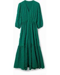 Go to DesigualLong coat with a V-notch collar and front pockets in a solid colour with texture creating a faux ornamental-inspired pattern. Color: Solid. Fit: Regular. Sleeve: Long. Length: Long. Front pockets. Closure: Button. Recycled polyester. Colour: blue