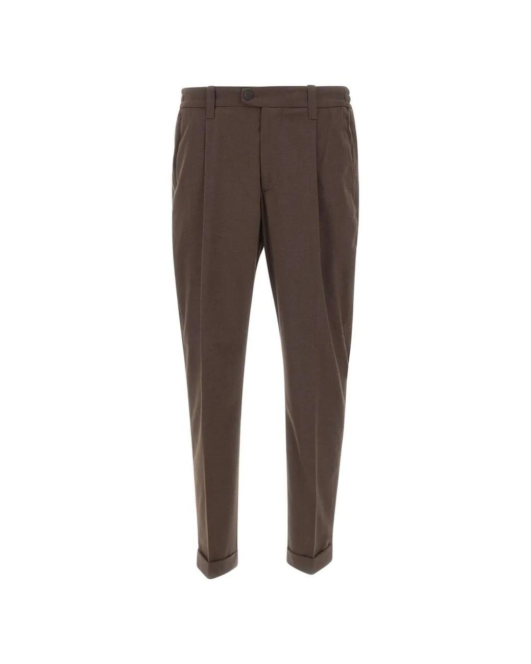 Brown pleated details welt pockets zip fastening button fastening turn-up hem Size: 50. Gender: Male. Material:Polyester/Viscose/Elastane. Colour: grey