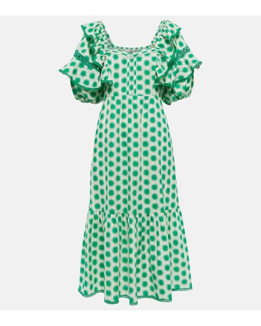 Women's Green Oliver Lace Trimmed Cotton Midi Dress