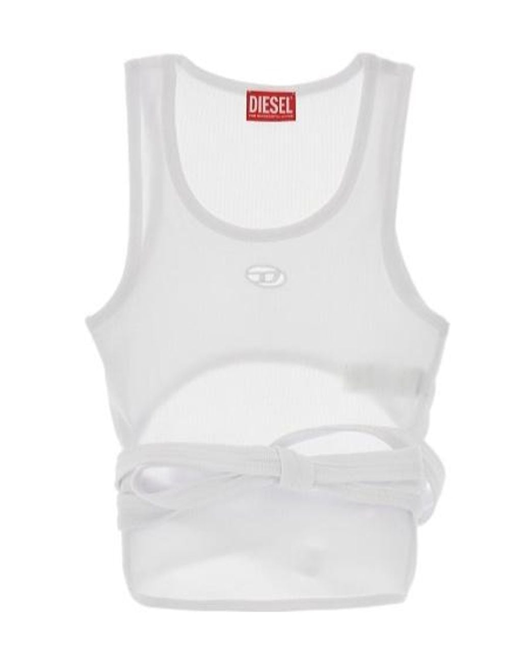 T-Anky-Tail-S1 Tied Ribbed Tank Top - Natural