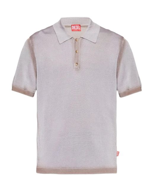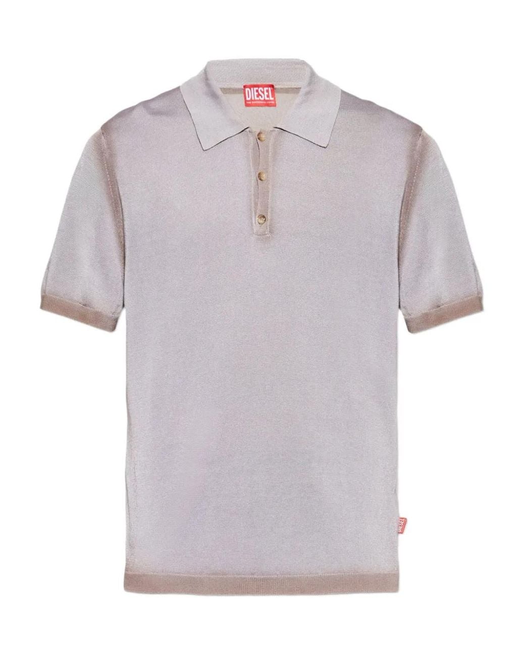 Light grey three-button placket short sleeves ribbed collar logo label detail Size: S. Gender: Male. Material:Viscose. Colour: grey