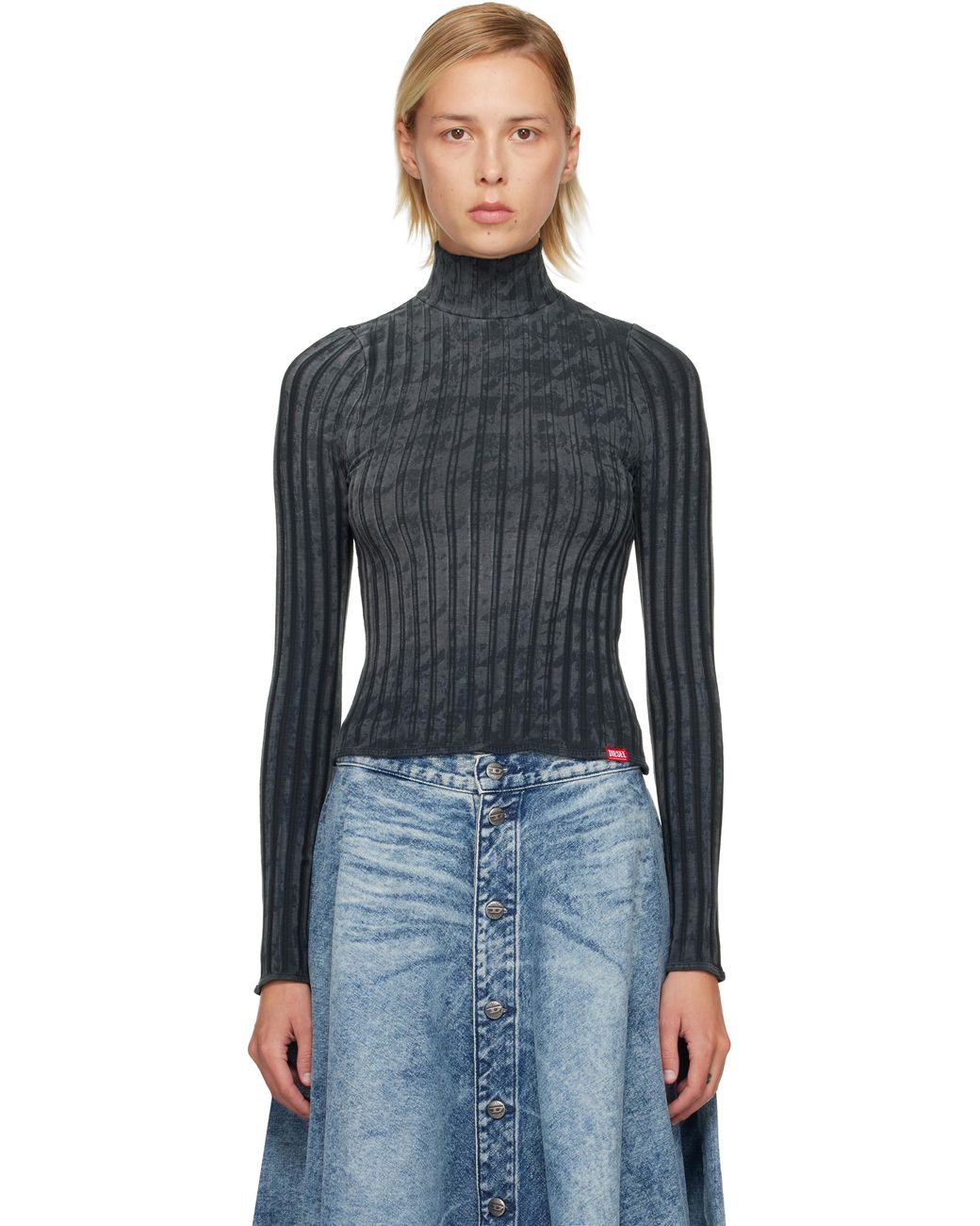 Rib-knit stretch cotton turtleneck. · Fading throughout · Logo flag at front hem · Zip closure at back collar Supplier color: Gray