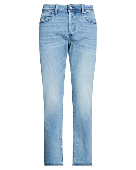 DIESEL. tapered jeans, model: buster-x, denim, faded, plain colour, brand logo, light wash, mid rise, regular fit, button fastenings, five pockets, machine wash, do not bleach, do not tumble dry. 99% Cotton, 1% Elastane. Colour: blue