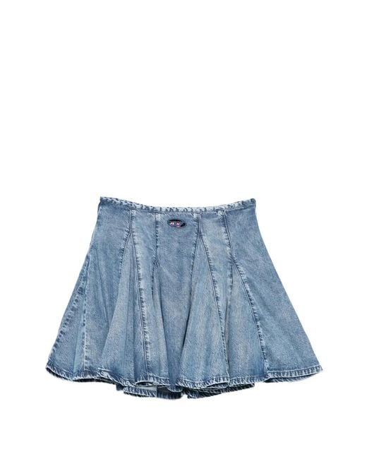 Women's Blue Logo-Patch Pleated Mini Skirt
