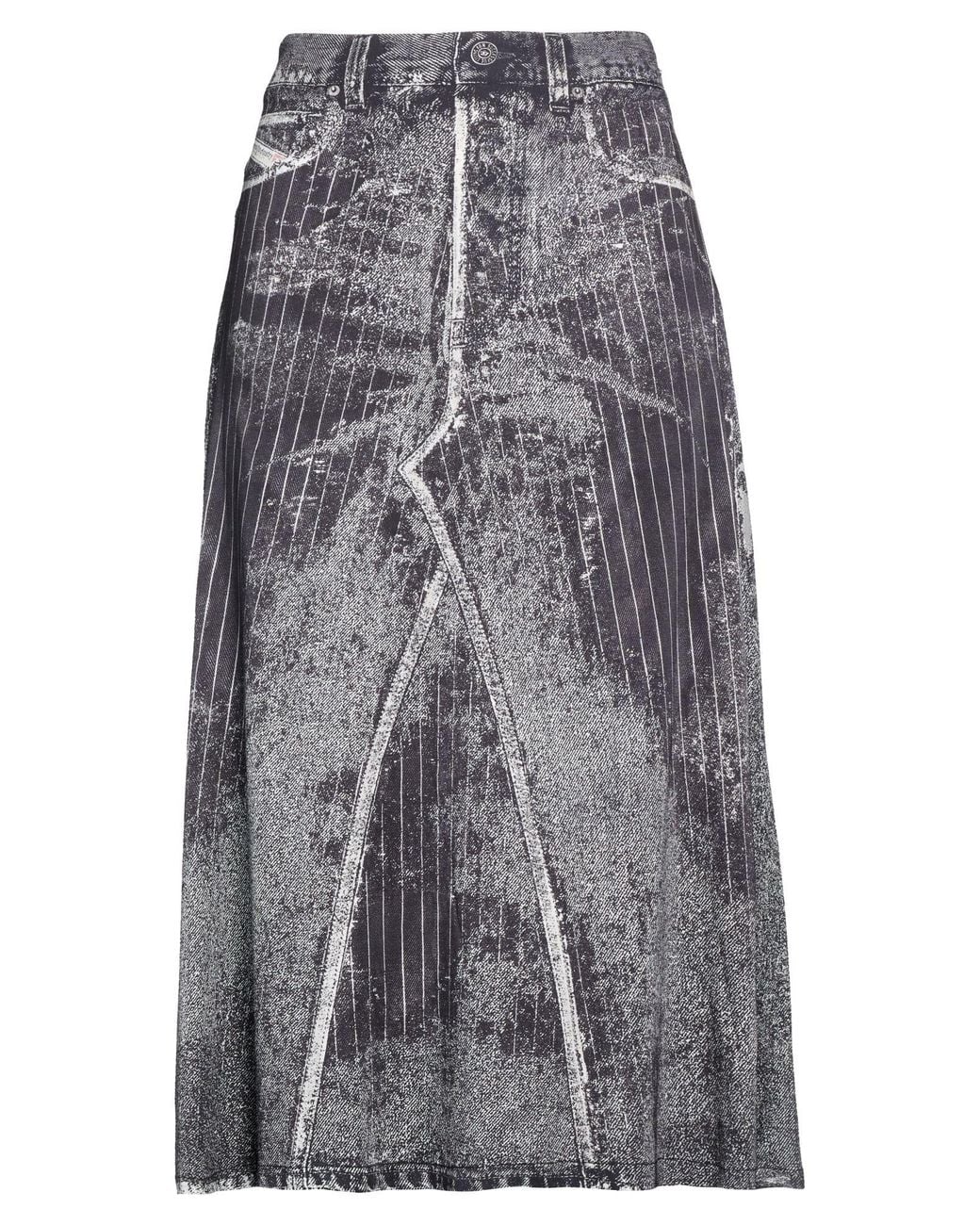 DIESEL. flared skirt, woven, stretchy fabric, two-tone, brand logo, elasticised waist, unlined, dry clean, do not bleach, do not tumble dry, do not iron. 95% Viscose, 5% Elastane. Colour: grey