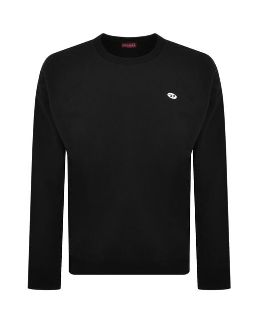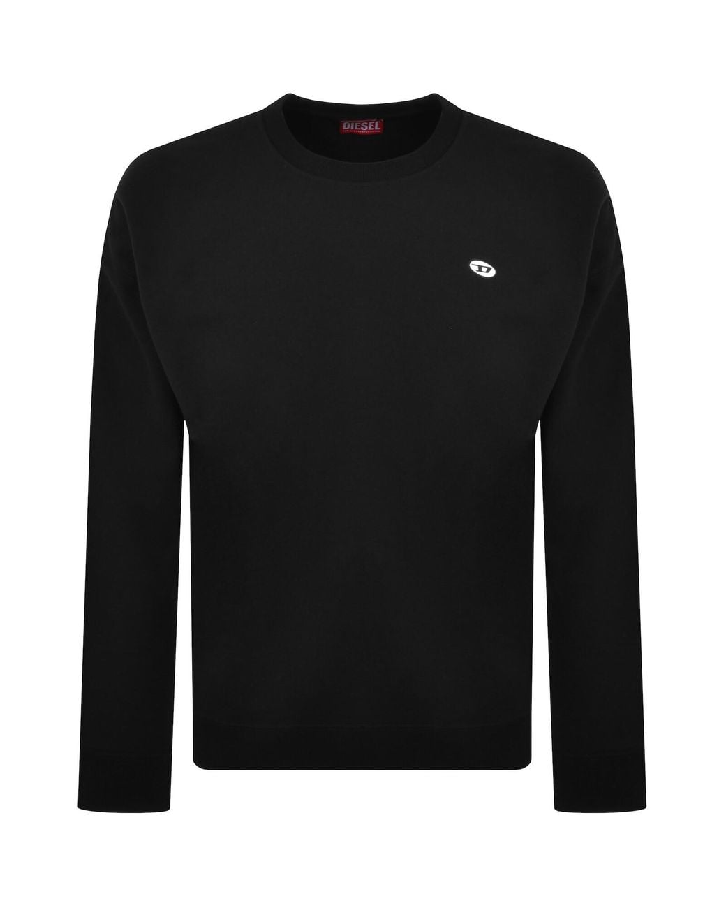 Diesel Rob Doval Sweatshirt In Black. Regular Fit. Ribbed design to the crew neck cuffs on the long sleeves and waistband. The signature Diesel oval logo patch is situated on the left of the chest in black and white. A soft fleece interior. 100% Cotton.