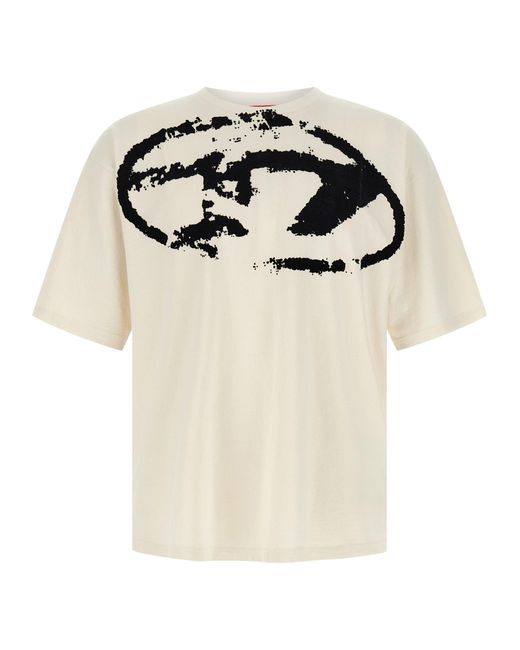 'T-Boxt-N14' cotton jersey t-shirt with a slightly rough used-effect texture, distressed 'Oval D' flocked print at the front, crew neck, short sleeves with dropped shoulders.