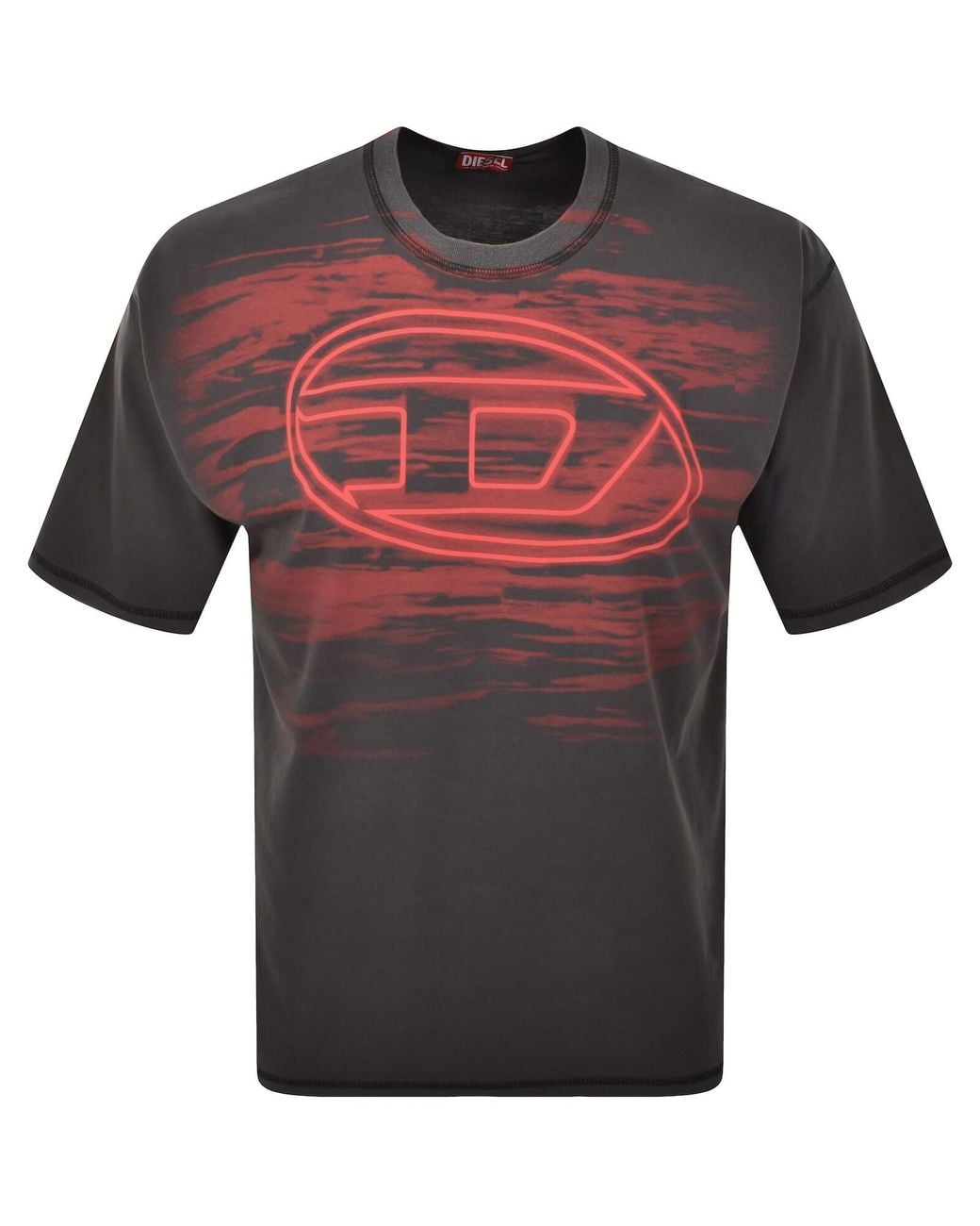 Diesel T Boxt T5 T Shirt In Grey. A ribbed crewneck and short sleeves. A large Diesel logo graphic is situated on the chest. 100% Cotton. Colour: grey