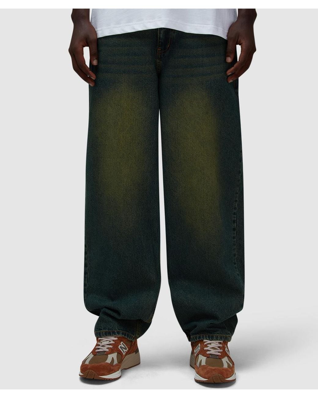 Men's Green Baggy Denim Pant (Sandblasted Pine