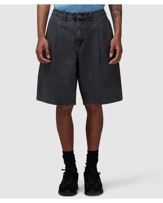 Minimalist design meets bold, eclectic silhouettes in DIME's latest streetwear. The Pleated denim short reflects the brand's commitment to quality and design. Regular fit Button and zip fly fastening Dual side seam welt pockets Dual back welt pockets 100% cotton Item code: DIME2SP2515LEM Colour: black