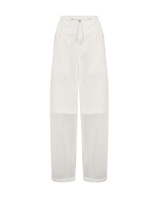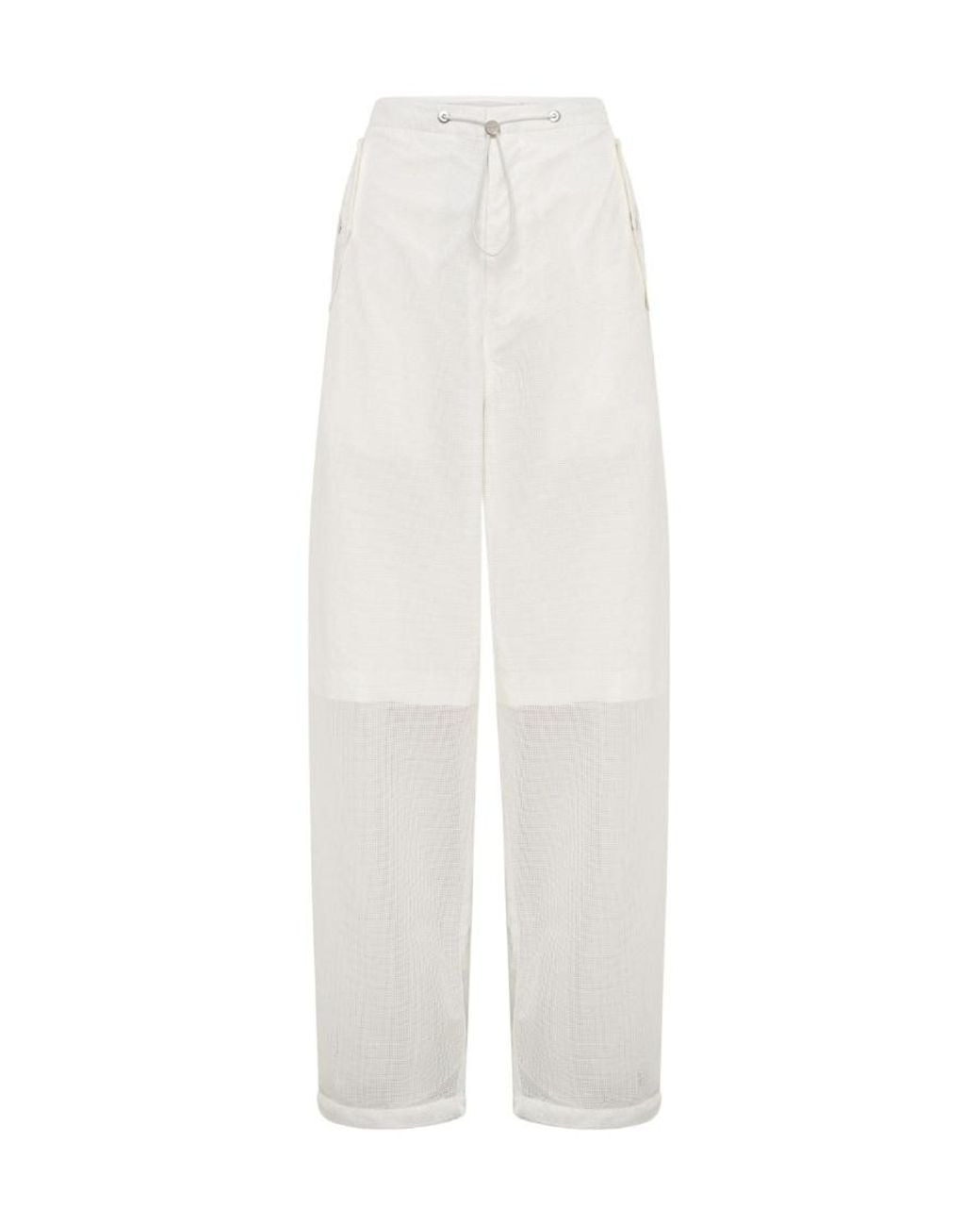 Women's White Grid Mesh Parachute Semi-Sheer Trousers