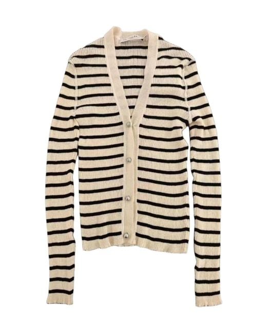 Part of the Dioriviera capsule the cardigan is a refined and elegant design The classic silhouette is crafted in a linen and silk knit with a white and navy blue D-Stripes motif enhanced by Dior Tribales buttons embellished with a silver-tone CD resin pearl inspired by the House s hallmark earring The cardigan will elevate any look from the Dioriviera capsule Colour: white