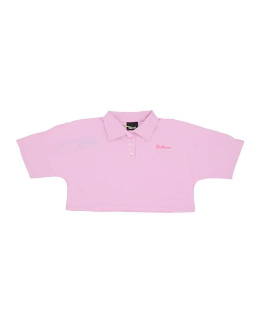 Stay stylish with this women's polo shirt from Disclaimer. Featuring a three-button closure, cropped cut, and a soft fit, this polo shirt is adorned with the Disclaimer logo on the front and back. Made from 100% cotton, it is hand washable or machine washable (please read the label). Colour: pink