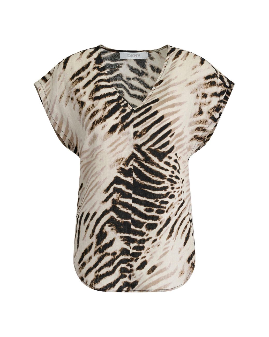 The DKNY Women's Short Sleeve Blouse is designed for multiple occasions. Its clean V-neckline keeps the profile streamlined and easy to style. Product Highlights * Short sleeves for comfortable coverage * V-neckline creates a flattering line * Lightweight fabric for all-day wear Colour: multicolour