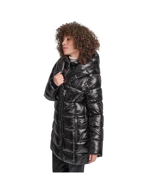 The DKNY Women's Shine Medium Puffer Jacket delivers practical warmth with urban appeal. Featuring an insulated, padded shell, this medium-weight design offers protection against winter elements while maintaining a sleek, contemporary shape. Product Highlights • Insulated padded shell balances warmth with streamlined style • Medium-weight design adapts to varying winter conditions • DKNY detailing adds metropolitan characterated shell with a padded build • Medium-weight design for adaptable styling • DKNY detailing for contemporary appeal Colour: black