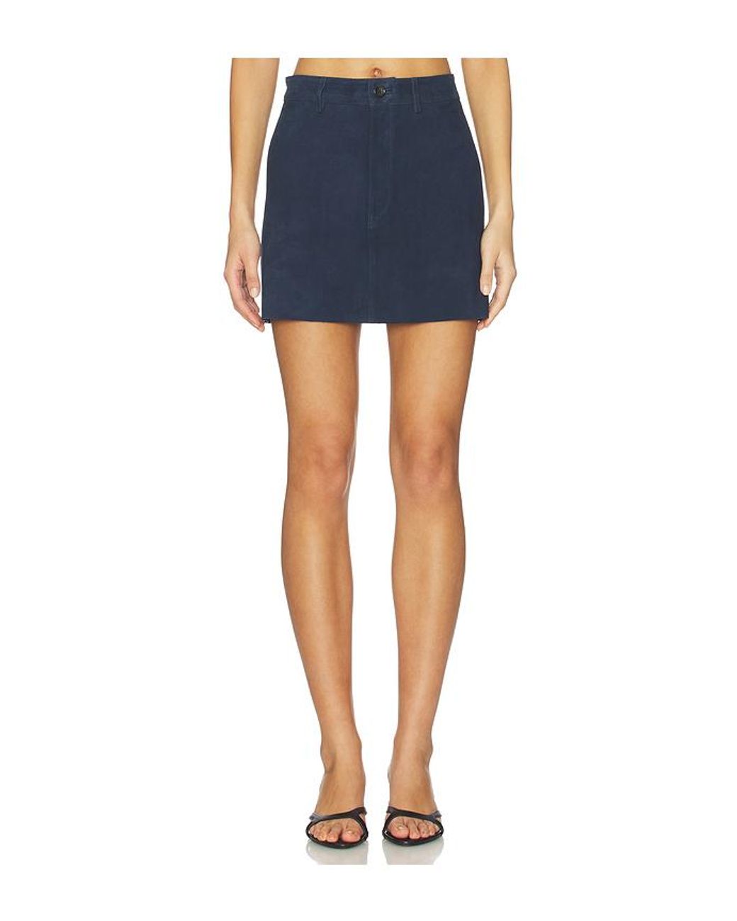 DL1961 Alma Suede Skirt in Navy. Size 24. Also in 26, 27, 28, 32. DL1961 Alma Suede Skirt in Navy. Size 26, 27, 28, 32. 100% goat leather. Made in Pakistan. Specialized dry clean only. Unlined. Straight zip fly and button closure. Genuine suede fabric. Back patch pockets. Skirt measures approx 14.5 in length. DL19-WQ5. 14132. DL1961 is a New York-based denim brand committed to redefining wardrobe essentials through a lens of sustainability and exceptional craftsmanship. With a focus on creating pieces that look as good as they feel, the brand minimizes environmental impact without compromising on style or quality. Owning and operating its own state-of-the-art denim factory, DL1961 maintains complete control over every step of the production process, ensuring low-impact practices and meticulous attention to detail. Renowned for pioneering fabric innovations, the brand uses a blend of regenerative and recycled fibers, along with water-efficient, eco-conscious techniques to craft each garment.