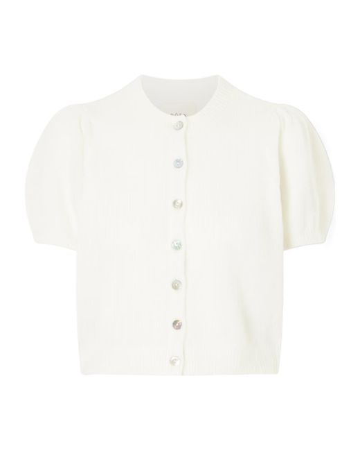 The cardigan features delicate pleats at the shoulders and a slightly relaxed cut. Colour: white