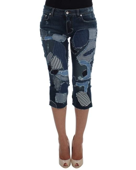 Women's Blue Stretch Patchwork Jeans Shorts