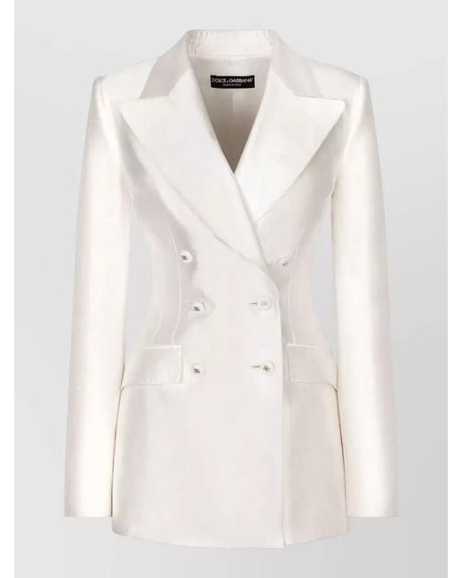 Women's White Double Breasted Blazer Structured Shoulders Silk