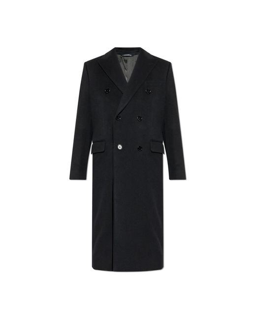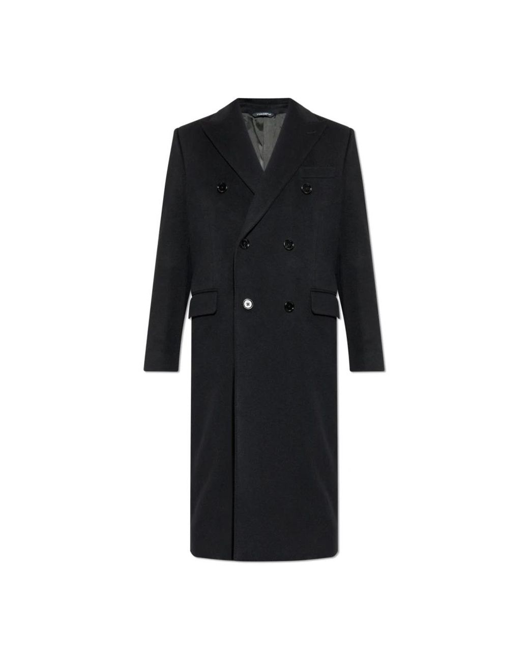 Wool Coat by Dolce & Gabbana is a true expression of aristocratic elegance in its purest form. The coat, in a deep black shade, impresses with its classic, long silhouette featuring a double-breasted closure and wide, sharply defined lapels. The slightly tailored fit, falling below the knees, perfectly accentuates the figure, while subtly structured shoulders enhance the formal character of the piece. The exclusive nature of this coat is highlighted by matte, noble wool with a pronounced texture, while the interior finished with soft viscose and a touch of cashmere guarantees unparalleled wearing comfort. Classic, glossy buttons and practical flap pockets at hip level infuse elements of timeless functionality. WHY BUY This Product? * Exceptional quality Italian craftsmanship designed by the masters at Dolce & Gabbana * Unchanging style – a perfect choice for formal and special occasions * Noble materials ensuring durability and comfort * Timeless, refined aesthetics and practicality Model`s Measurements Height: 185cm Chest: 92cm Waist: 74cm Hips: 91cm Model is wearing size: 50 Colour: black