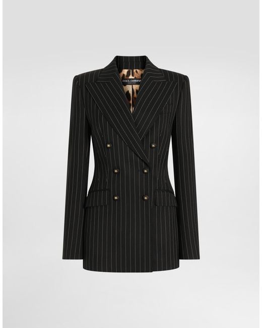 Women's Black Double-Breasted Pinstripe Wool Jacket