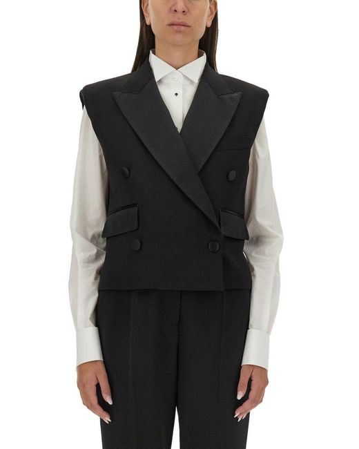 Women's Black Double-Breasted Sleeveless Jacket