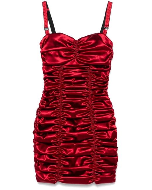 Women's Red Draped Satin Minidress