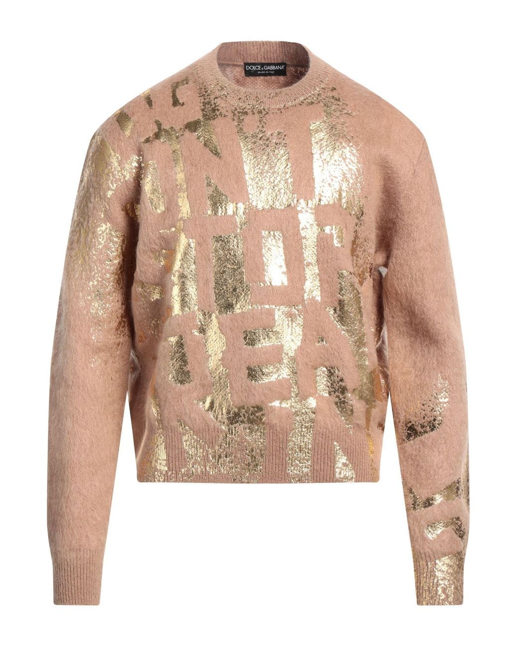 DOLCE&GABBANA. knitted, metallic, medium-weight knit, no appliqués, plain colour with print, crewneck, long sleeves, no pockets, large sized. 50% Mohair wool, 30% Polyamide, 20% Wool.