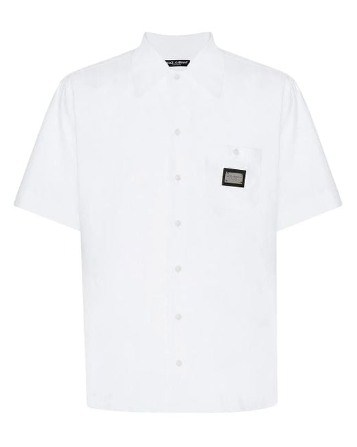 Men's White Logo-Tag Cotton Bowling Shirt