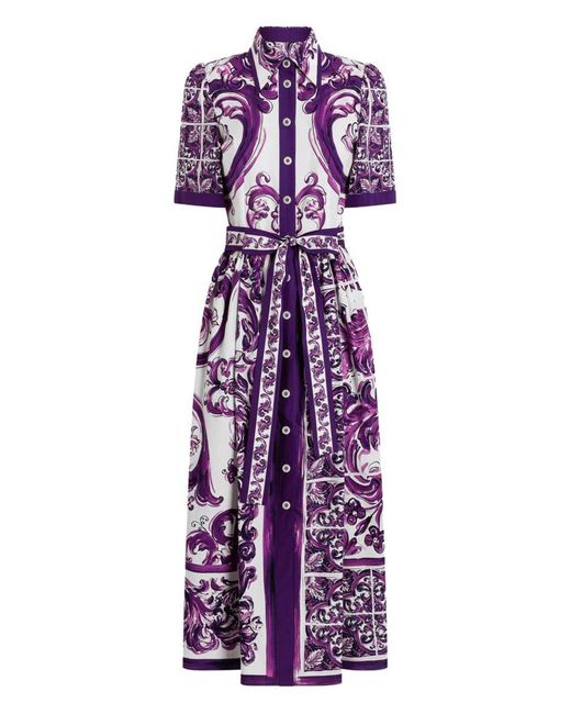 Women's Purple 'Maiolica' Print Chemisier Dress