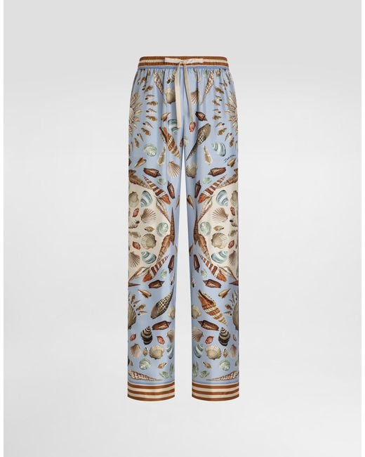 Men's Blue Shell-Print Silk Twill Trousers