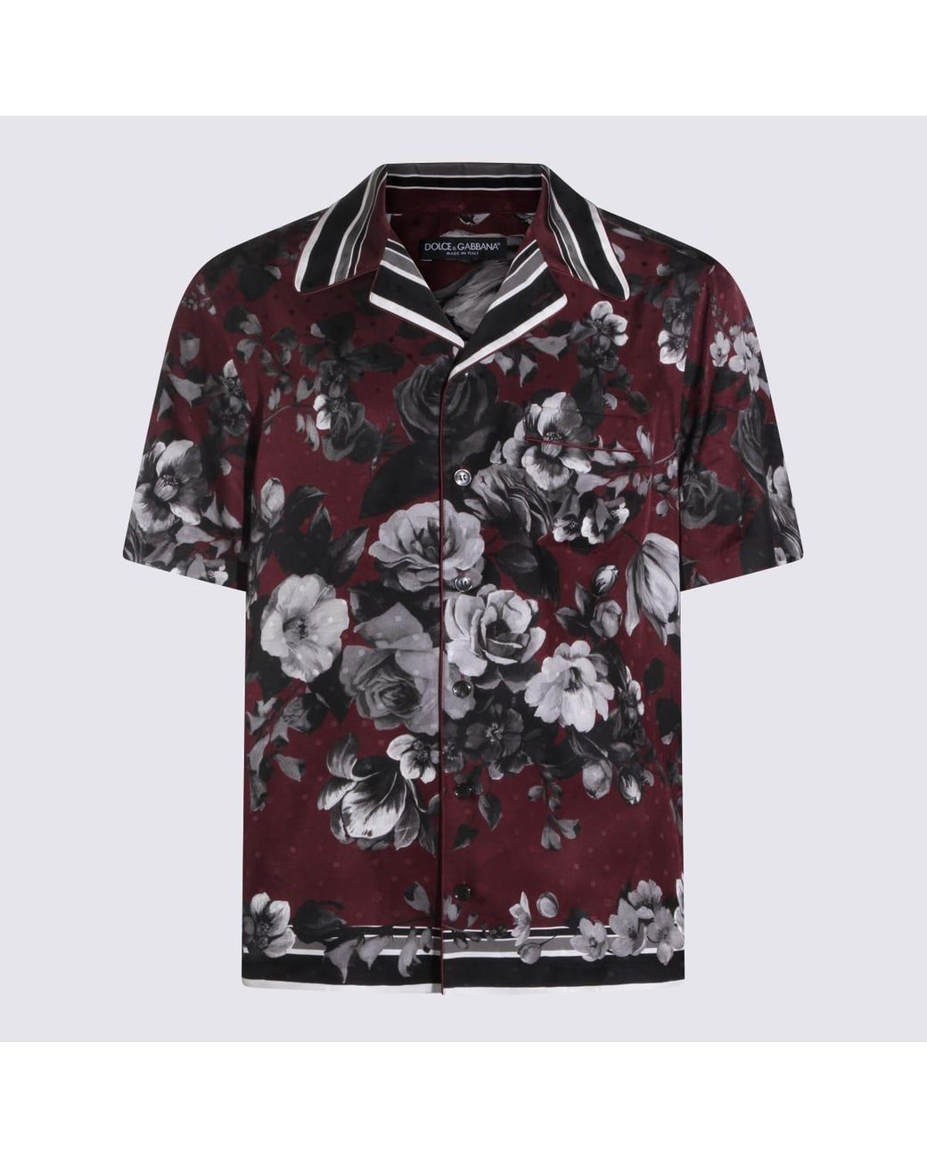 Bordeaux and black silk shirt from Dolce & Gabbana featuring short sleeves, shirt collar, buttons fastening, all over stamp and regular fit.Composition: 100% Seta