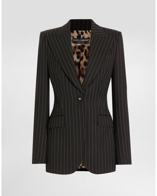 Women's Black Single-Breasted Pinstripe Wool Jacket