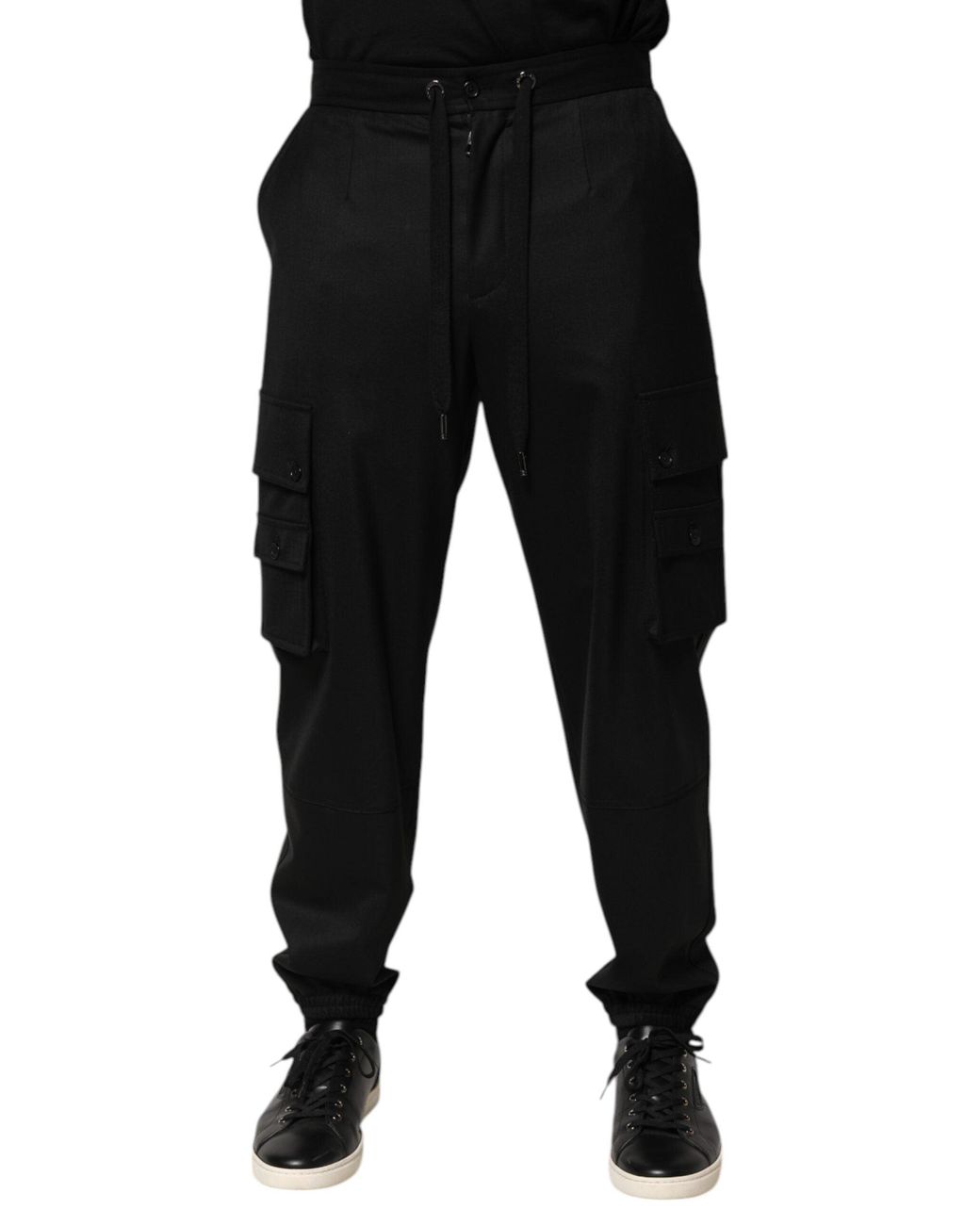 - Solid Black Cargo Jogger Men Sweatpants Pants