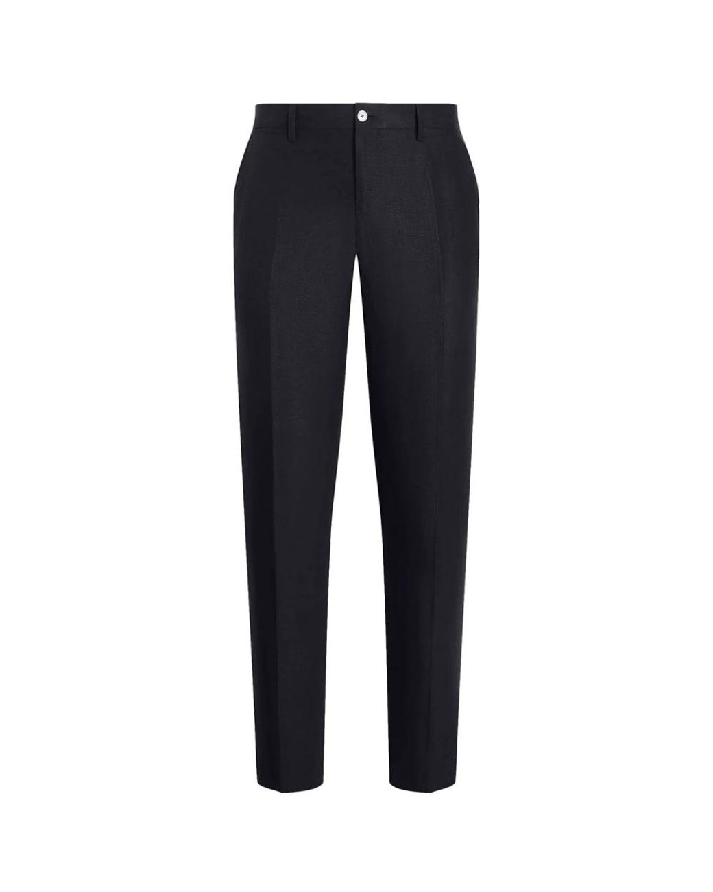 Dolce & Gabbana Tailored Linen Pants are lightweight, tailored trousers designed for warm-weather and smart-casual dressing. They combine a refined silhouette with practical details for everyday wear. Key attributes: Blue | Blu scuro | Linen | Belt loops | Fly-covered zipper with button fastening | Front slant pockets | Buttoned welt back pockets | Tailored silhouette | Dimensions & fit: Outer leg length: 105 cm (size IT 48) | Hem width: 17.5 cm (size IT 48) | Regular fit | Composition & care: 100% Linen
