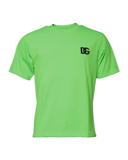 Elevate your casual style with this brand new, 100% authentic Dolce & Gabbana Polyester T-Shirt in green. Featuring a classic round neck and logo details, this short-sleeved tee is made in Italy with a regular fit.
