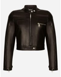 Go to Dolce & GabbanaWoven nappa leather jacket: Black Regular fit Long sleeves Zipper fastening Zipped front pockets Unlined The piece measures 61 cm from the rear collar seam on a size IT 48 Made in Italy